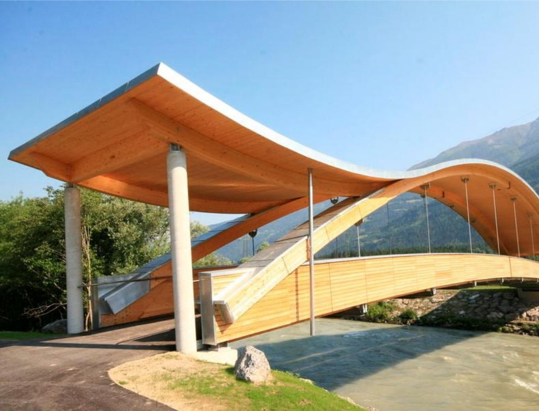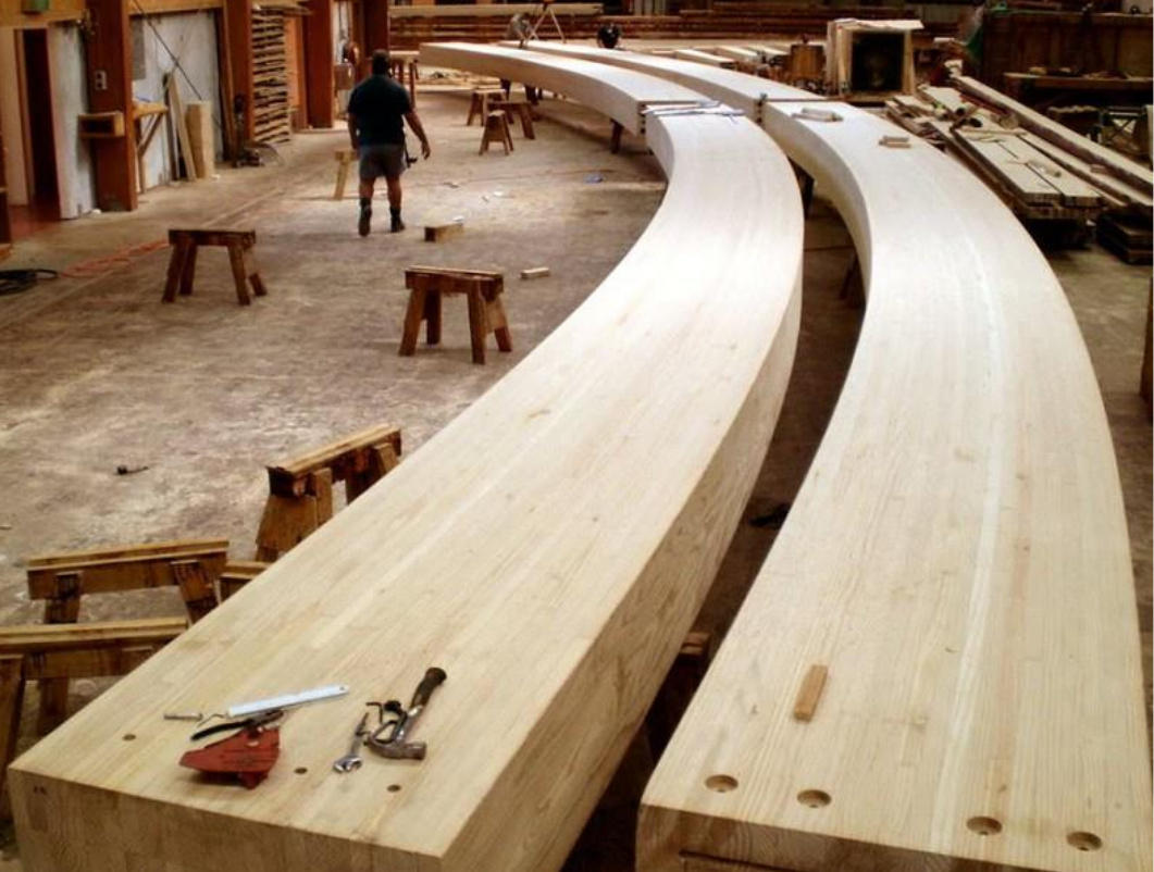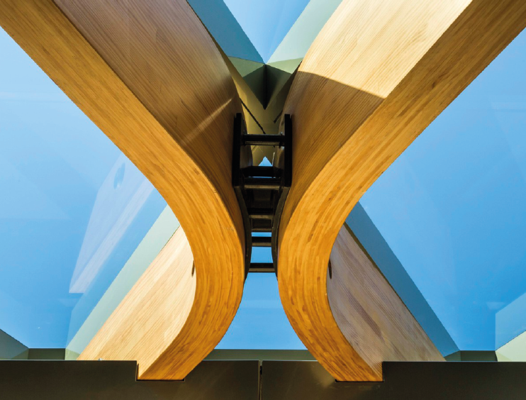 FLEXIBILIDADE DO DESIGN – Através da MLC é possível criar peças de grandes dimensões, com menos ligações, capazes de vencer longos vãos livres. O material permite curvaturas acentuadas, sem defeitos típicos na madeira maciça, como rachaduras.