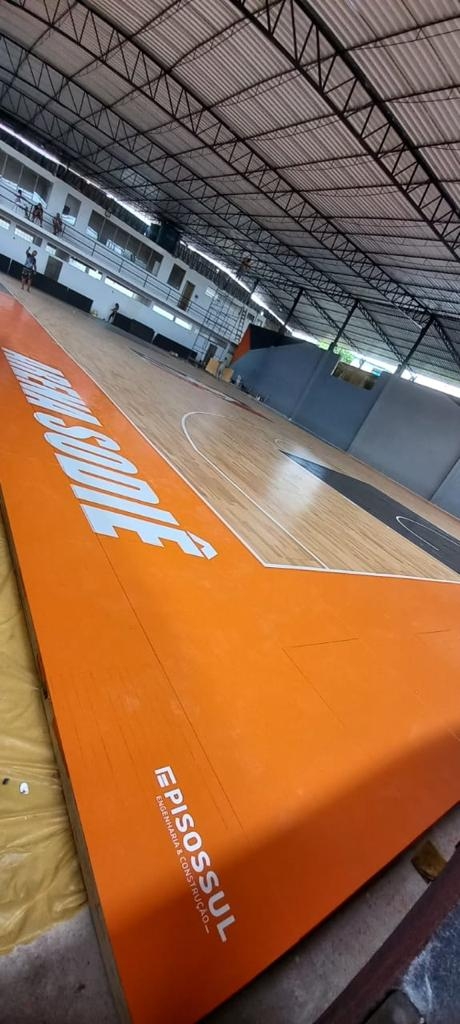 Piso portátil composto por um conjunto de placas portáteis em madeira, sua montagem é executada através de encaixe, pinos guia e fixadores entre si. Proporcionando uma excelente performance na montagem e desmontagem do piso esportivo