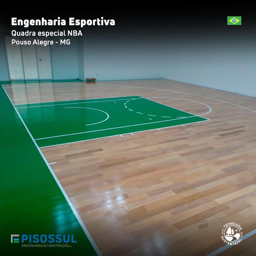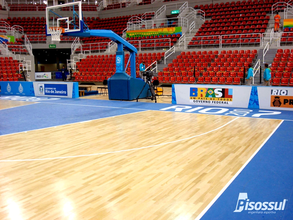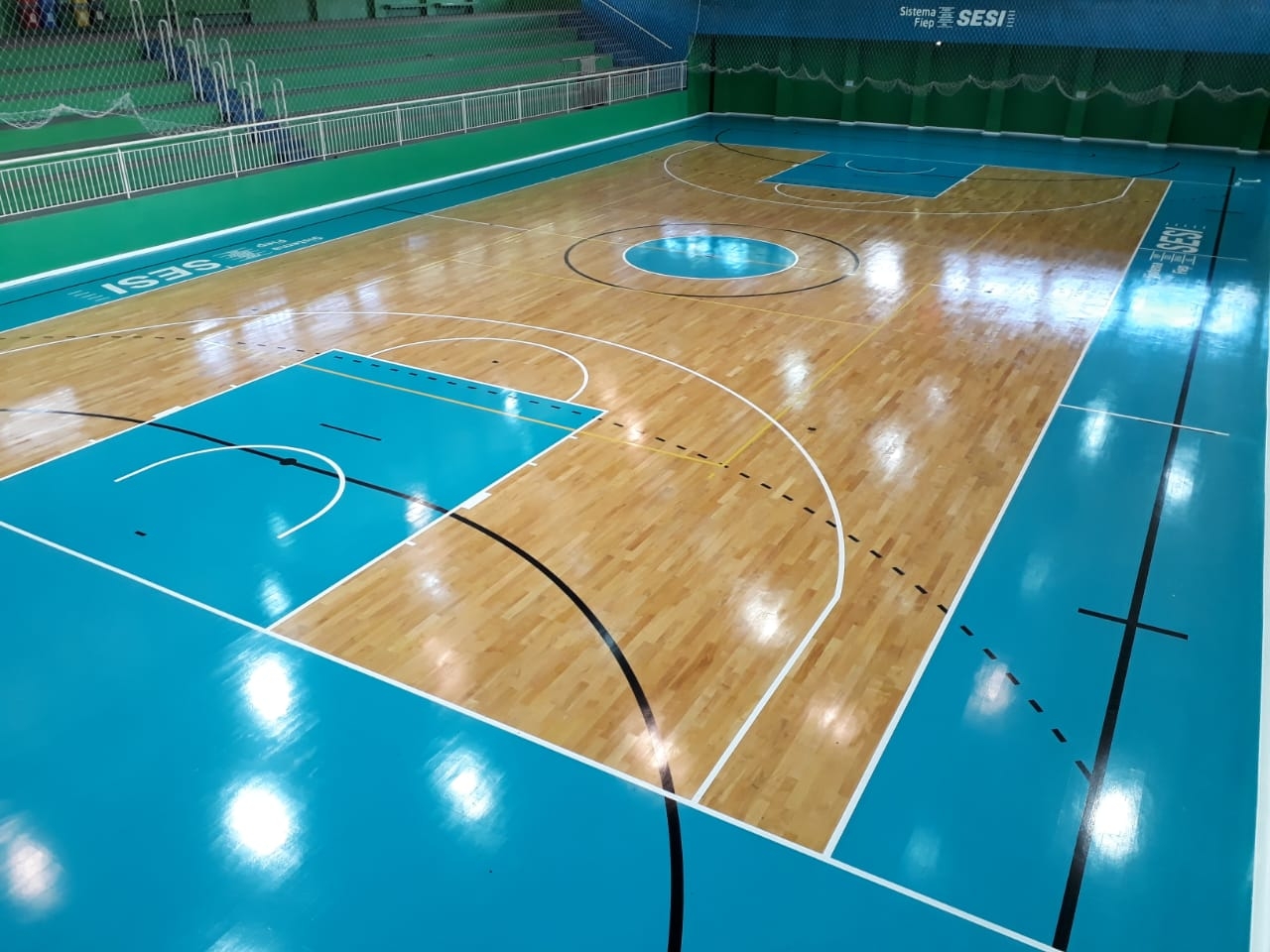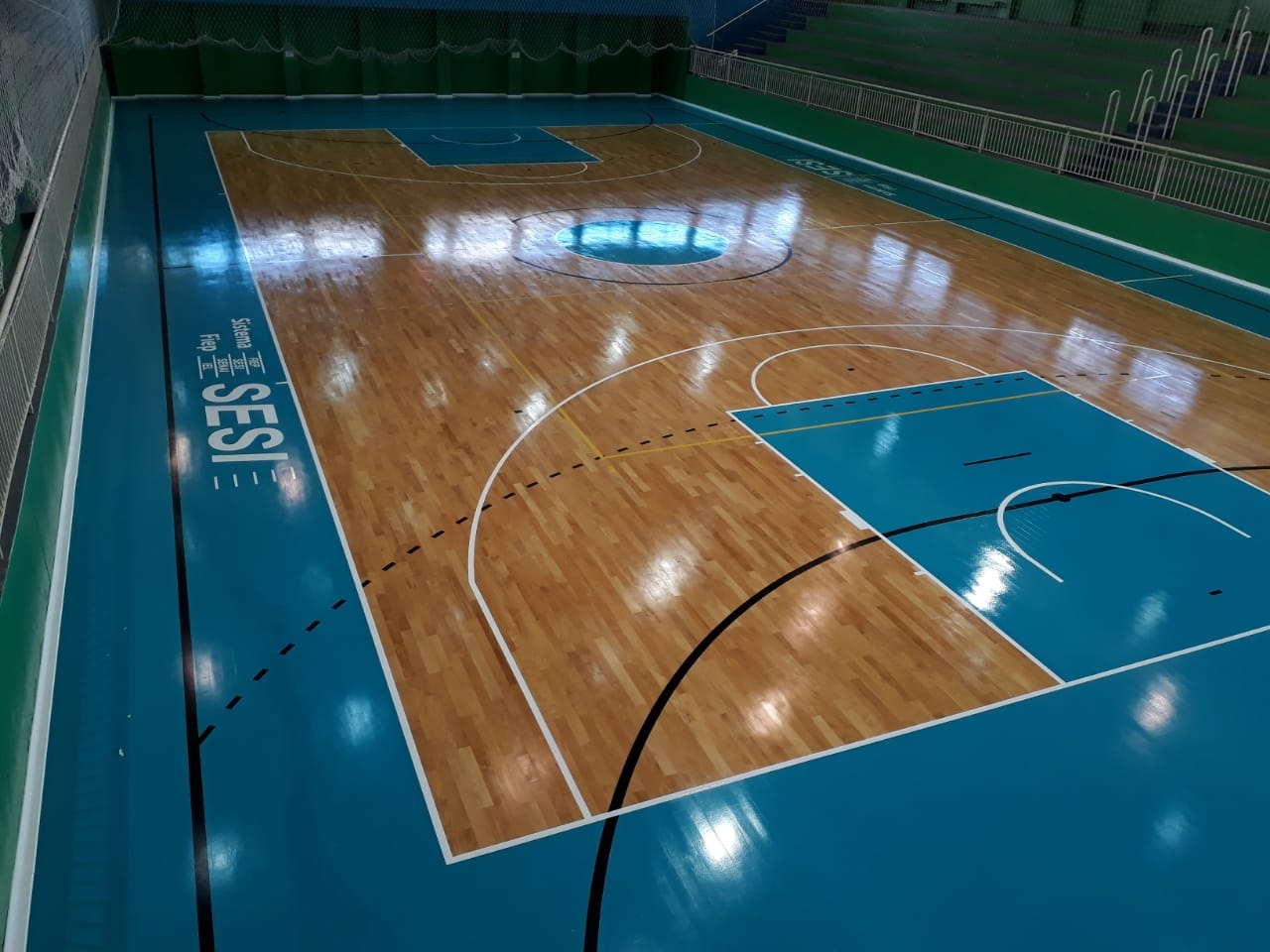 Estrutura reforçada, madeira rigorosamente selecionada, verniz e acabamentos de primeira qualidade, certificado pela FIBA. Sistema de assoalho bisolada (anti-ferpas).