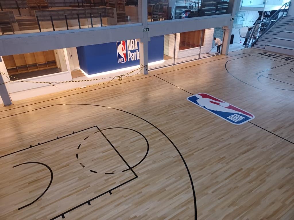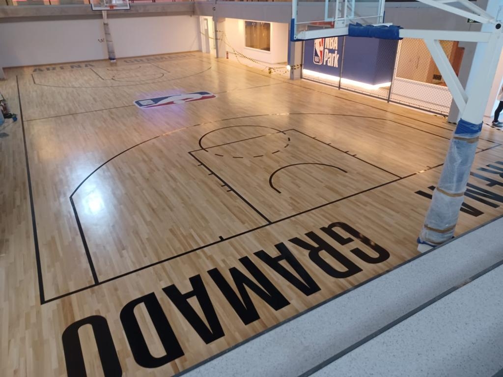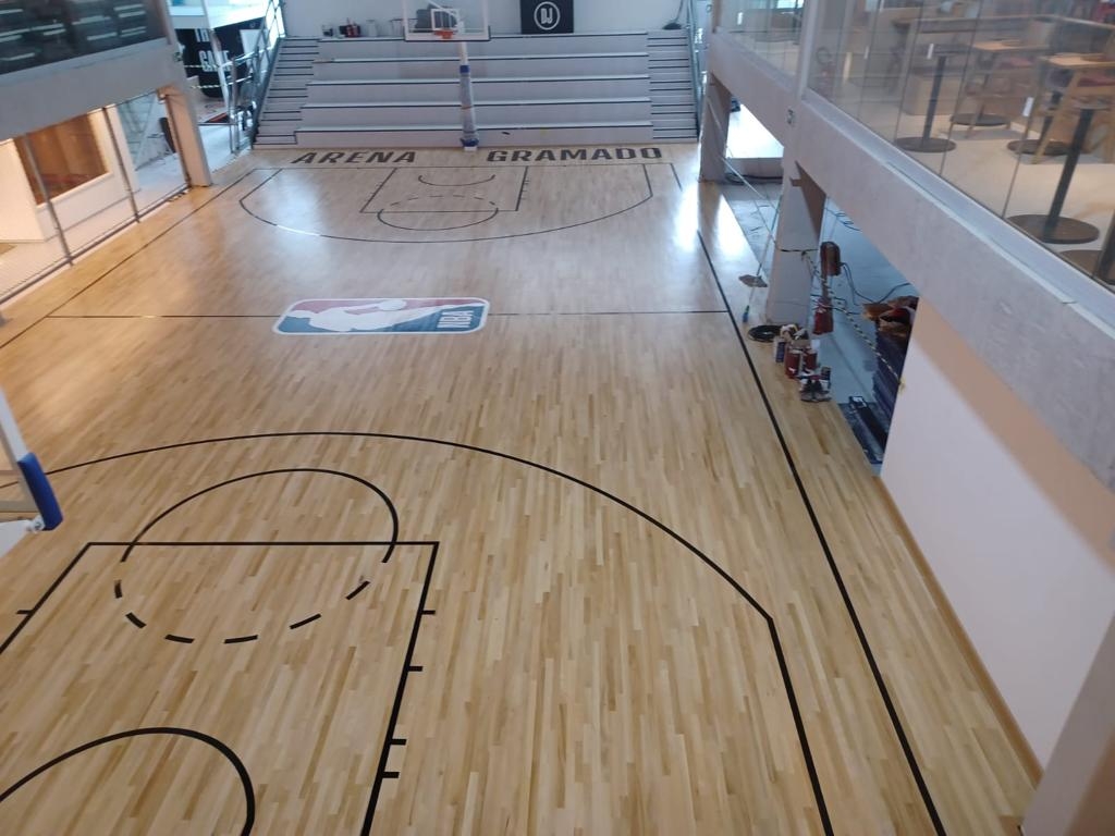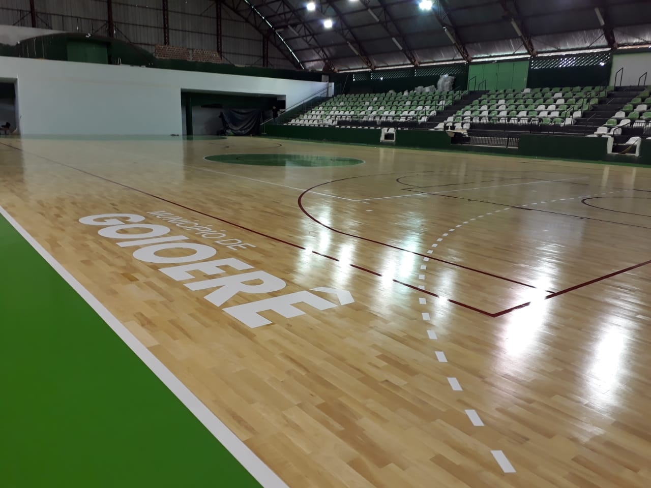 Estrutura reforçada, madeira rigorosamente selecionada, verniz e acabamentos de primeira qualidade, certificado pela FIBA. Sistema de assoalho bisolada (anti-ferpas).